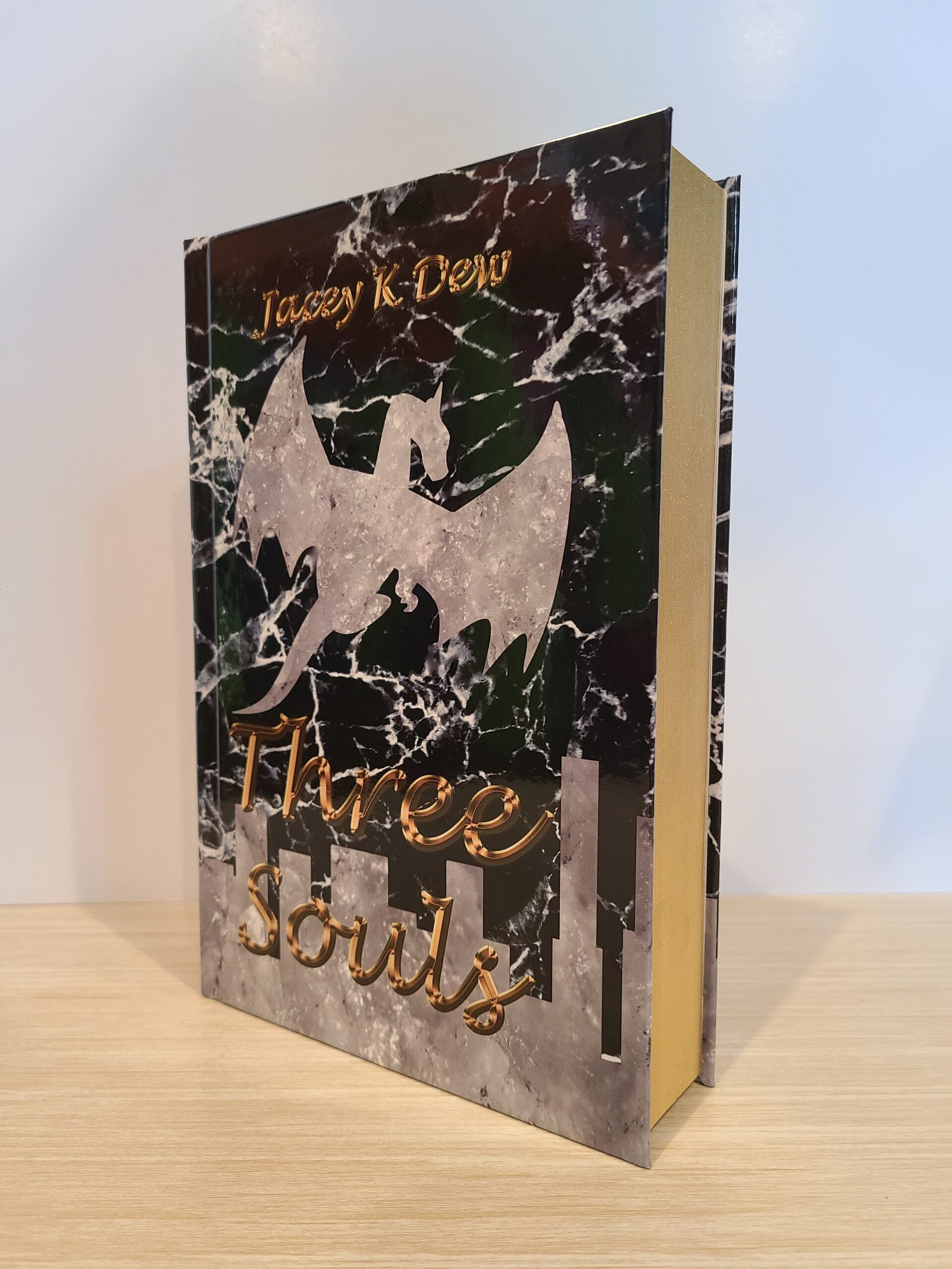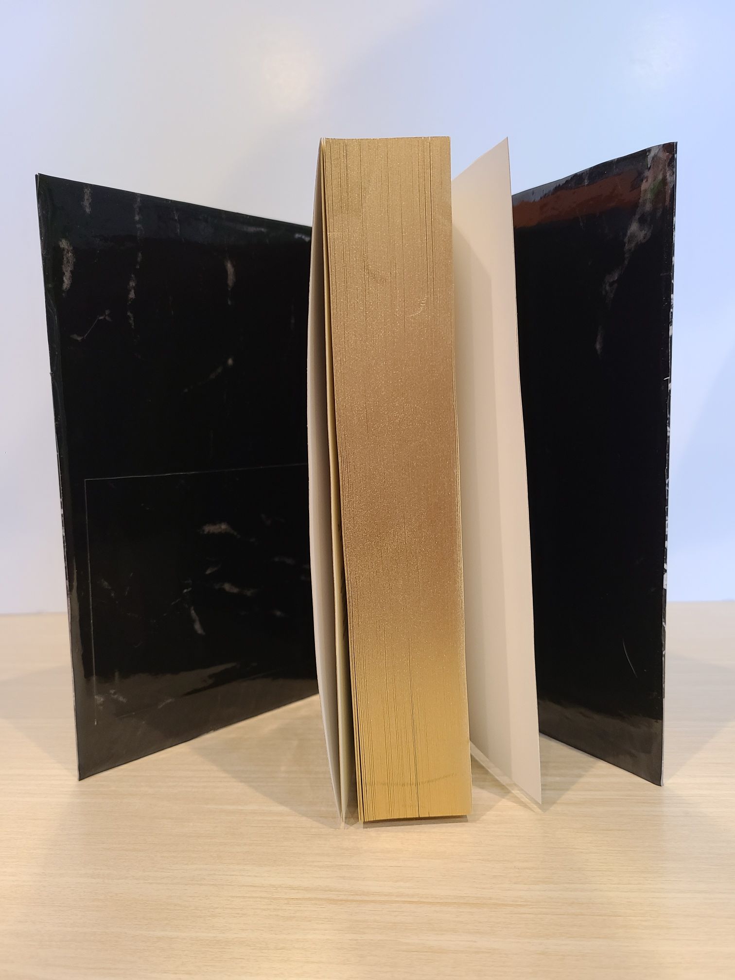 Metallic gold (not real gold) spray painted edges on the Three Souls Case Laminate book.
