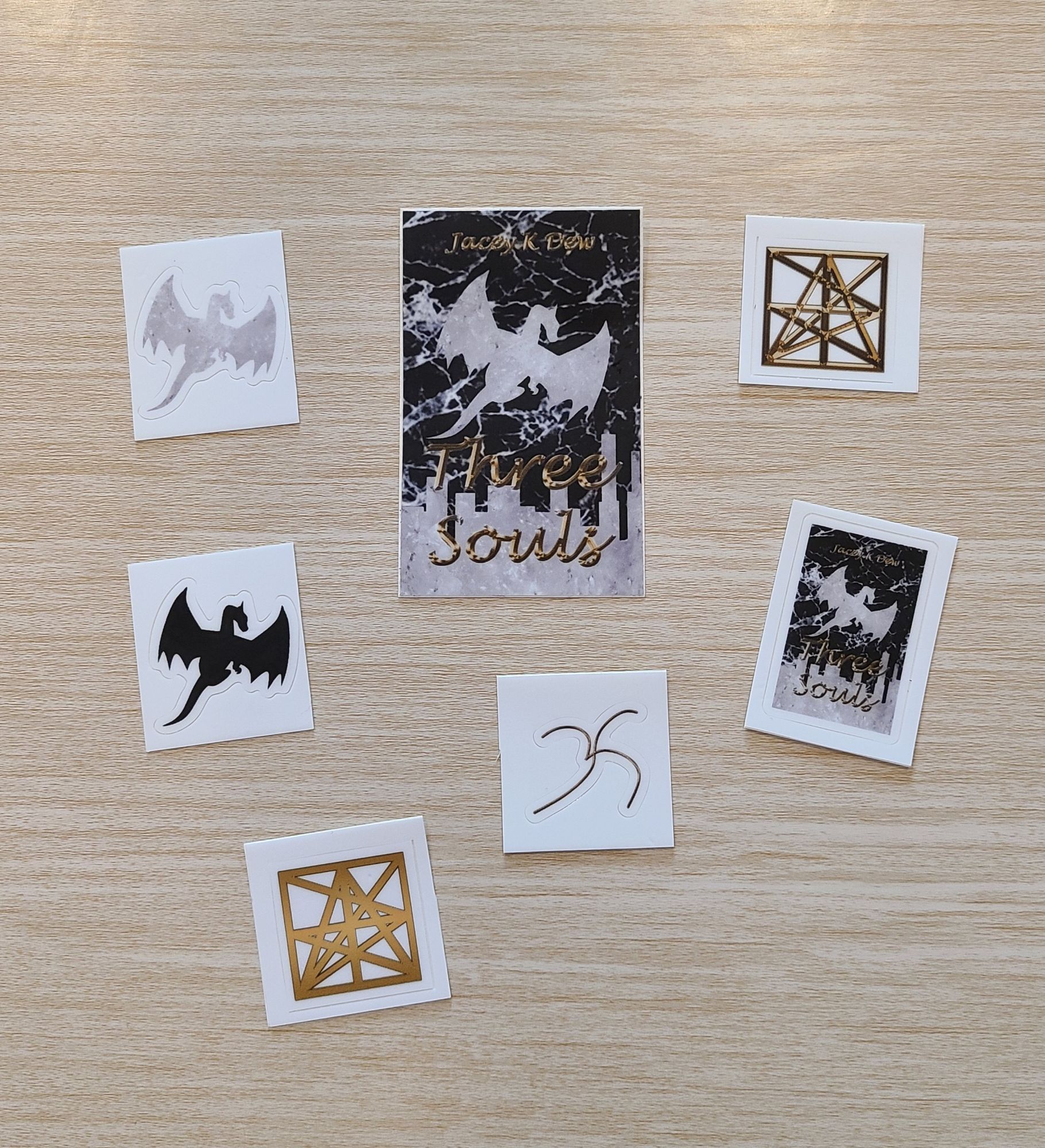 Randomized Small Merch Included: 1 Vinyl Dragon Car Decal (7.66cm x 7.5cm at longest points, randomly picked from assorted colours of black, gold or white), Free Ebook Voucher, 3 Assorted Stickers (randomly picked from a variety of style and sizes), 3D Printed Dragon Coin (Approx 3cm diameter, randomly picked from assorted colour of black, gold or white)